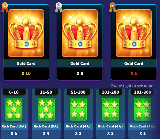 2. Jika Pemain berada di peringkat 1–300 pada waktu penutupan, Pemain akan menerima hadiah sesuai peringkat.